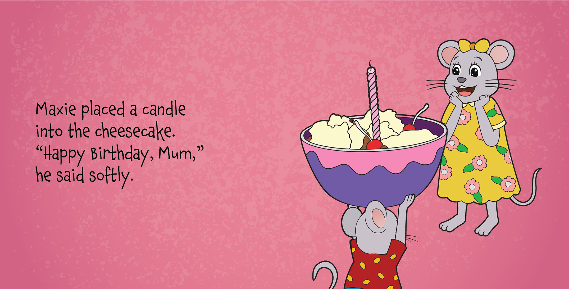 Maxie and the Cheesecake Surprise is a beautifully illustrated picture book that follows Maxie, a kind-hearted little mouse, as he tries to make a very special birthday surprise for his mum.